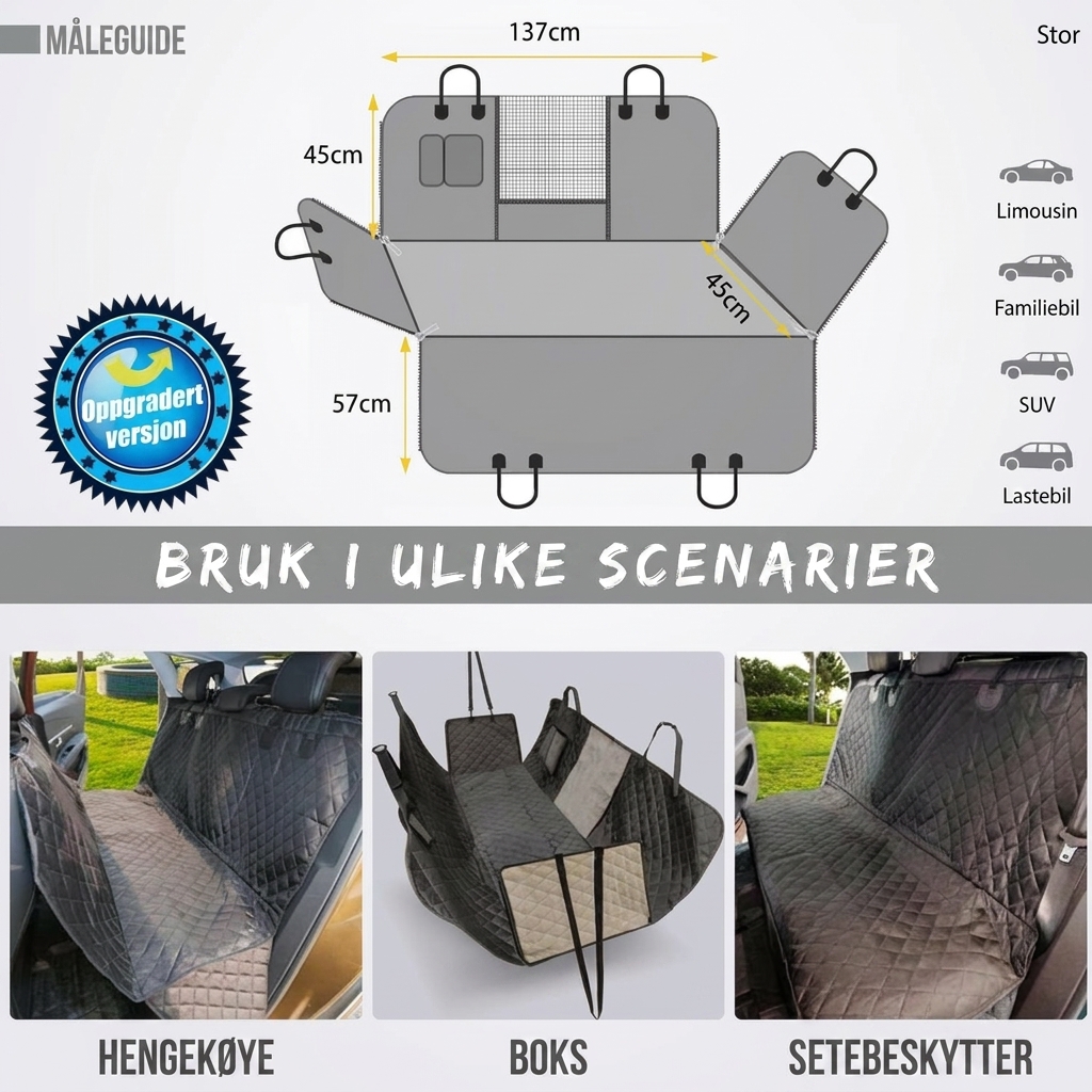 Gjør bilturen mer bekymringsfri for både deg og din firbente venn med en løsning som kombinerer slitestyrke med praktisk brukervennlighet.