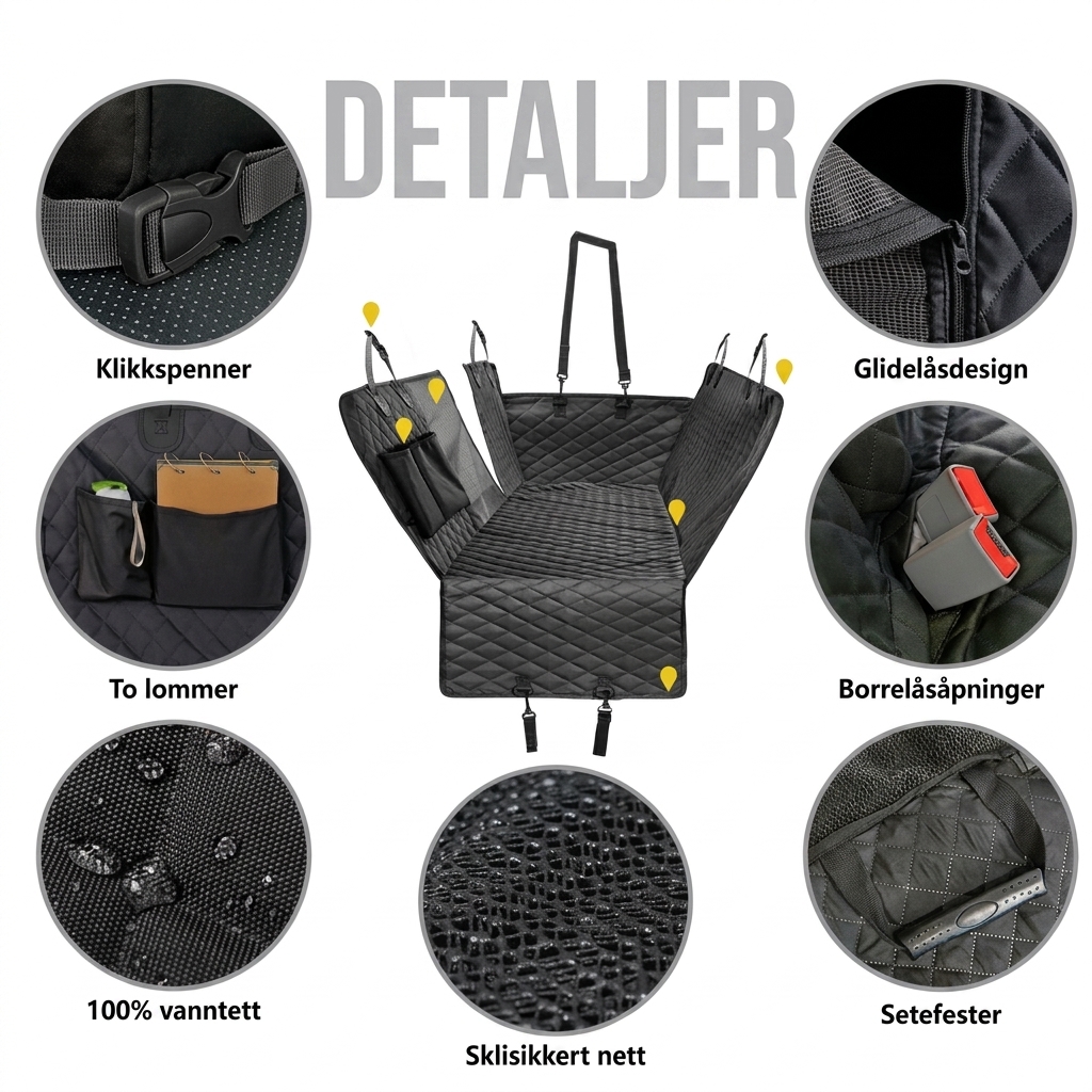 Dette robuste hundetrekk til bilsete er den ideelle løsningen for deg som ønsker å ta med hunden på tur uten å bekymre deg for skitt, fukt eller riper i interiøret. Trekket er designet for å skape en trygg og komfortabel plass for hunden din, samtidig som det holder bilsetene i god stand.