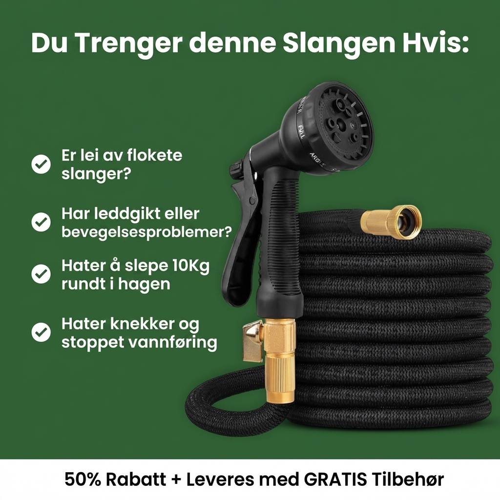 Er du lei av tunge, stive hageslanger som tar stor plass og alltid krøller seg? Vårt komplette utvidbare hageslange-sett er den perfekte løsningen for moderne hager, balkonger og bilvask.